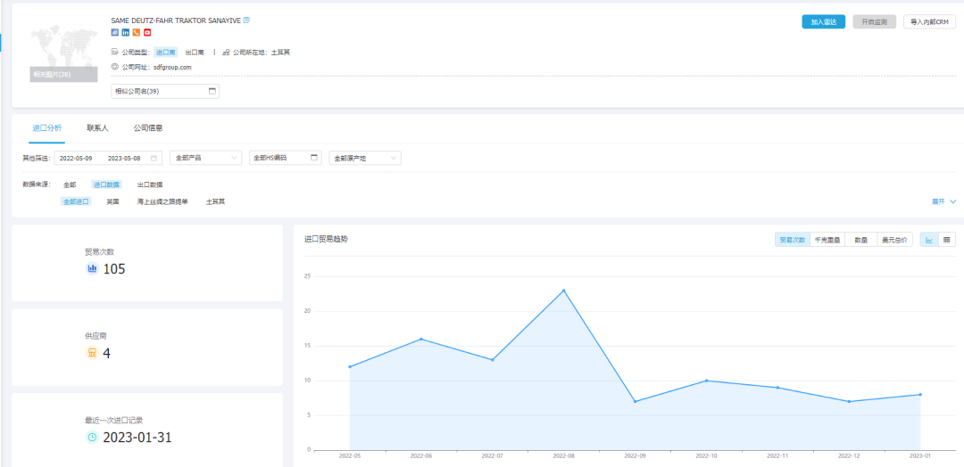 金年会诚信至上外贸通可以清晰分析潜在客户的采购时间、采购对象、采购数量、采购价格、采购频率、采购关系,精准刻画客户画像,为开发和跟进客户给予决策依据。