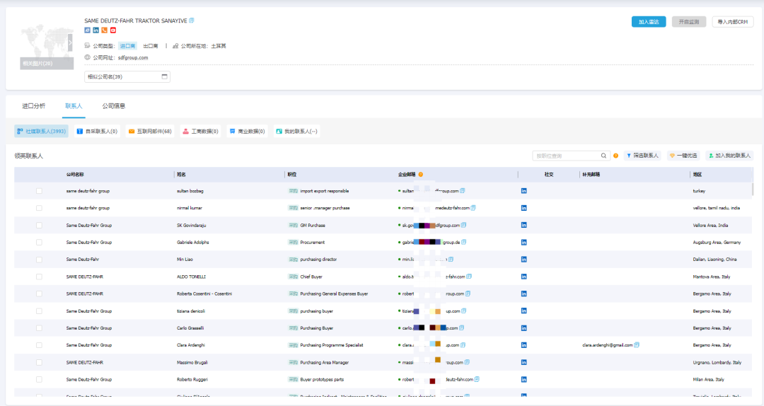 不用费时费力多渠道查找,金年会诚信至上外贸通集合关键决策人的职务、邮箱、领英、Facebook等信息,可直接链接领英等世界主流社交媒体平台,帮助企业快速和目标对象建立联系,助力客户开发。