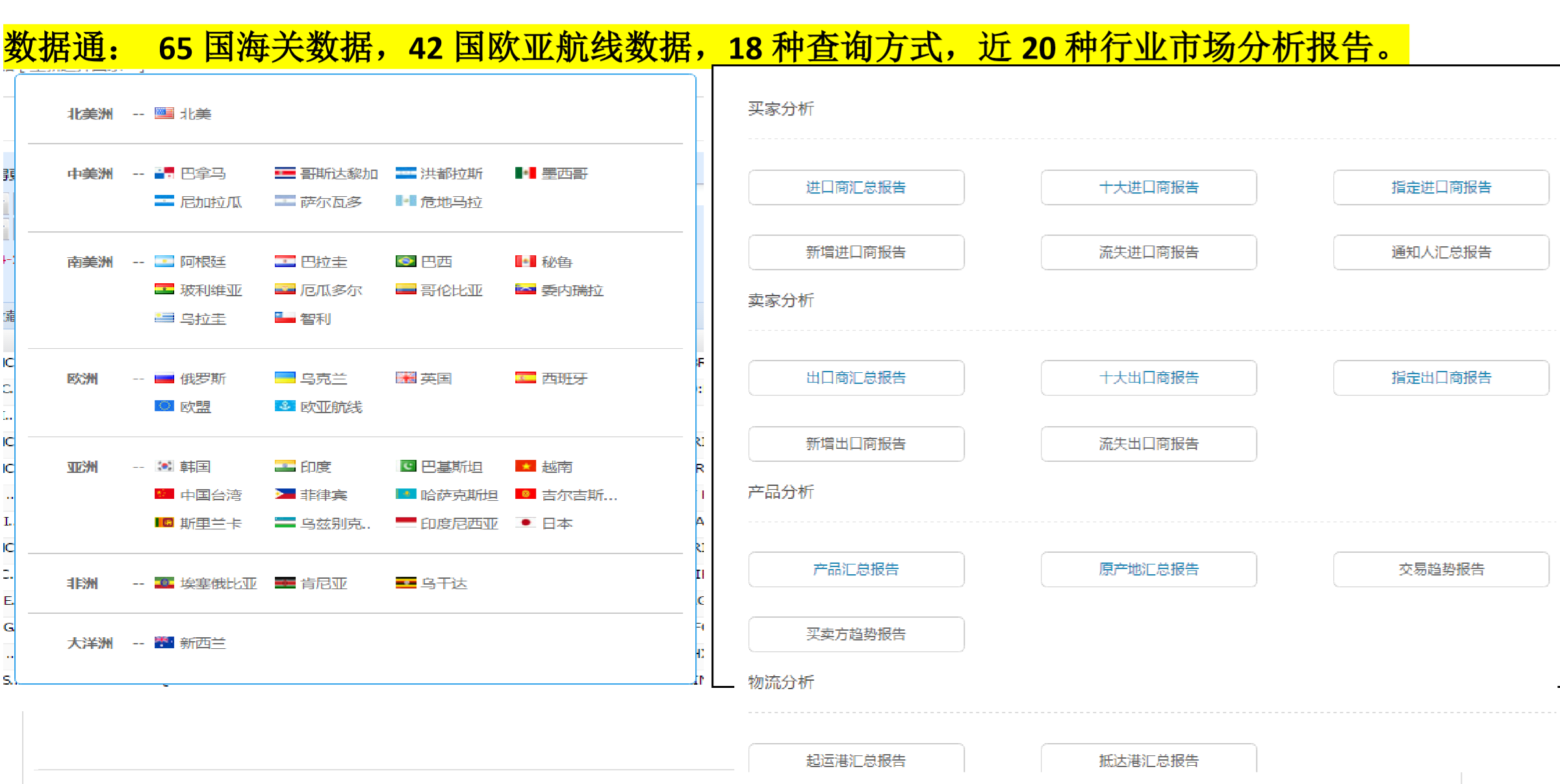 金年会诚信至上海关数据库,实时给予全球涵盖65国海关数据,42国欧亚航线数据,100+亿实时贸易数据,定位1.8亿全球企业信息,帮助您分析全球市场贸易趋势及分布,为您的产品快速、精准、科学地锁定热销国家和新兴市场。